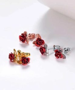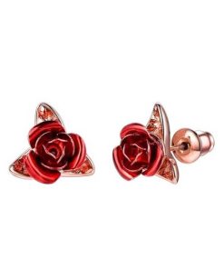 Cute Red Rose Flowers Stud Earring