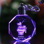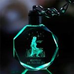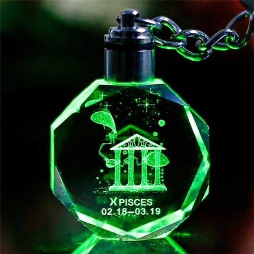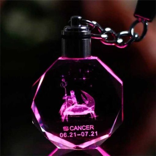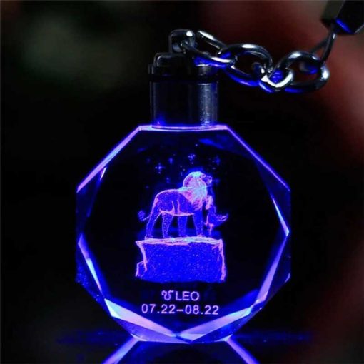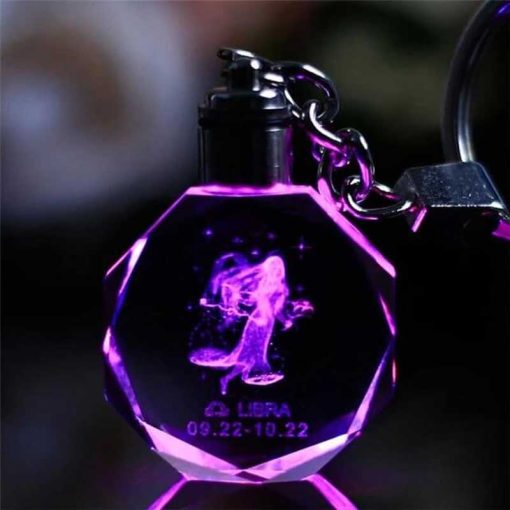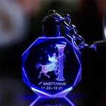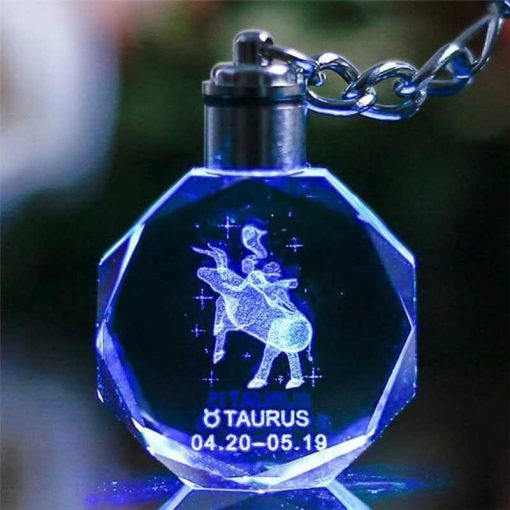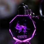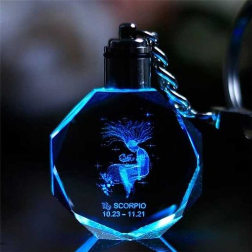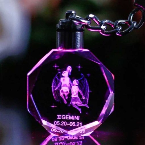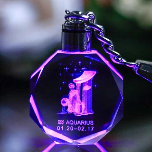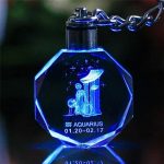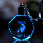 Personalized Key Chain with Engraved Zodiac Crystal Pendant